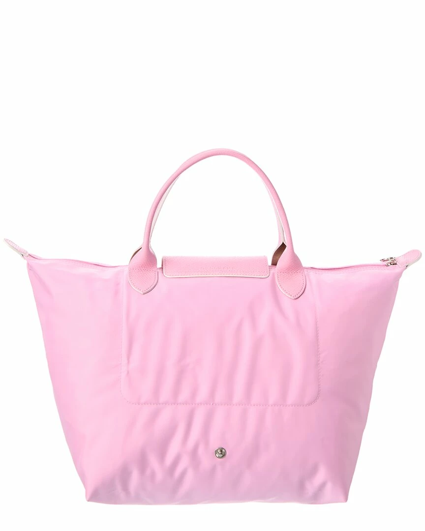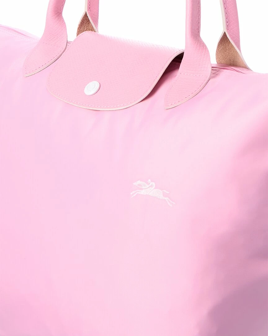 - Le Pliage Club Medium Canvas & Leather Top Handle Tote in rose polyamide canvas with inside coating/cowhide trimming and silver-tone hardware with horse embroidery