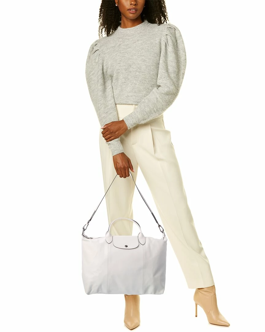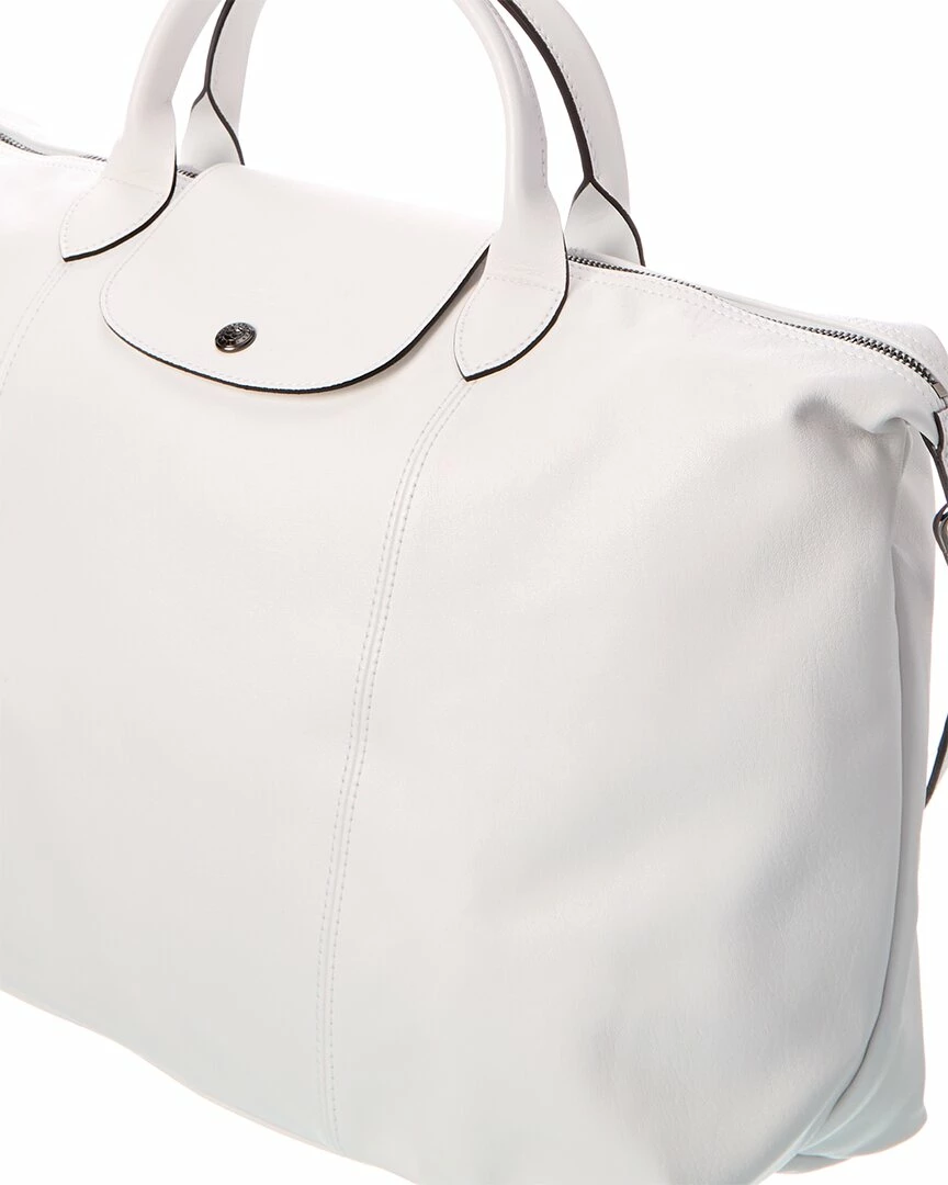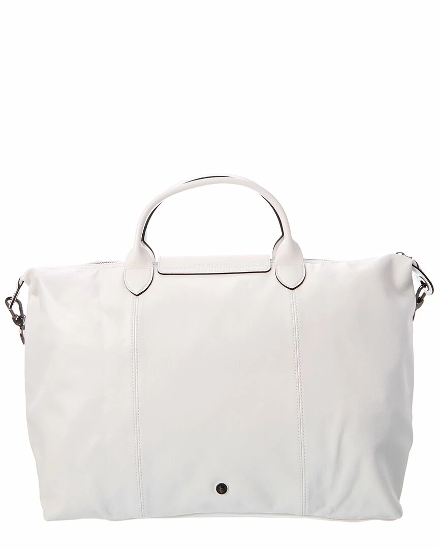 - Le Pliage Cuir Large Leather Top Handle Tote in blanc leather and dark silver-tone hardware with embossed logo at closure