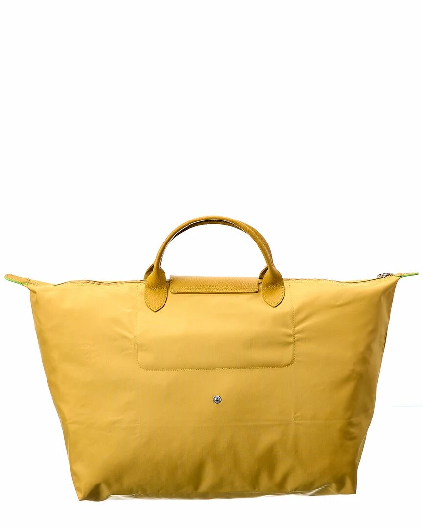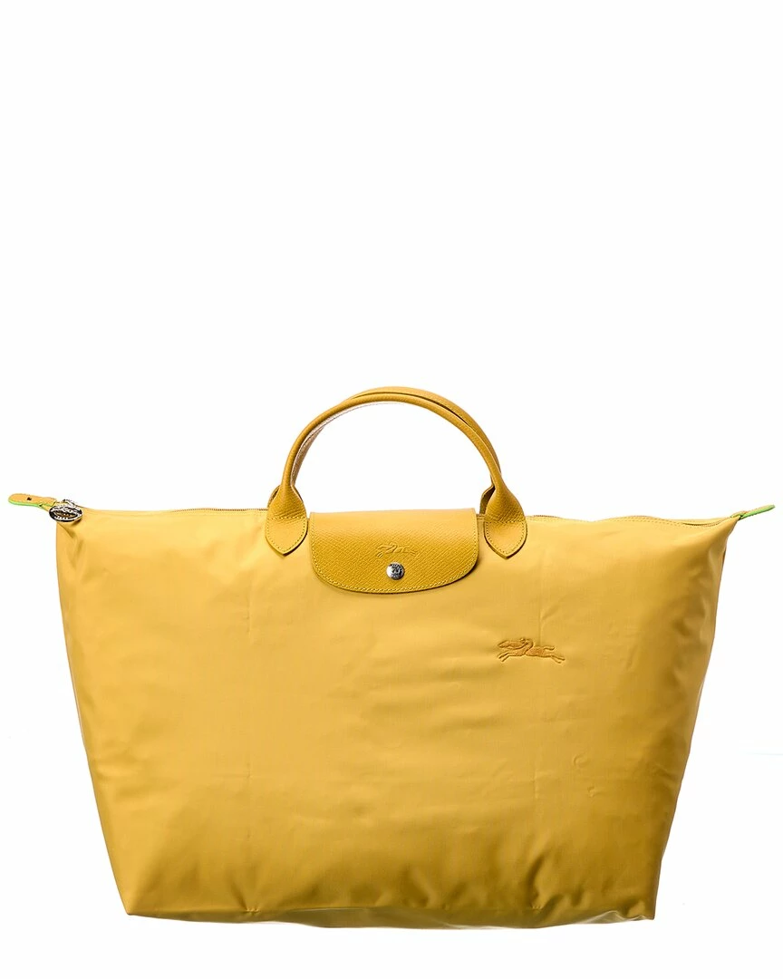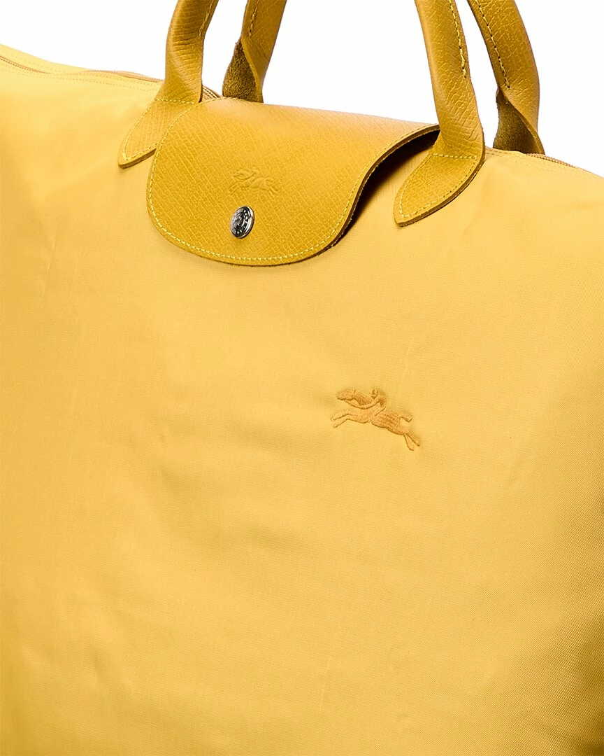- Le Pliage Green Shoulder Bag in yellow canvas with silver-tone hardware and foldable design
